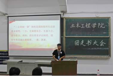 会议伊始,全体肃立,奏唱国歌、团歌。随后,组织部干事上台进行自我介绍。接着,阳鸿祥介绍了团支书的工作职能及主要职责,并对团支书工作开展方面做出了要求。组织部副部长刘雅婷、周欣先后介绍了团支部工作手册考核方案、政治学习考核方案,向各班团支书详细讲述了考核内容及要求。为响应上级团组织号召,落实基层团组织建设,赵文博向各班团支书重点介绍了“三会两制一课”,并强调了团支部工作手册的重要性,要求团支书提高思想站位,加强支委队伍建设,落实团建工作,引导班上同学积极参与365英国上市集团团校特色辅导课。