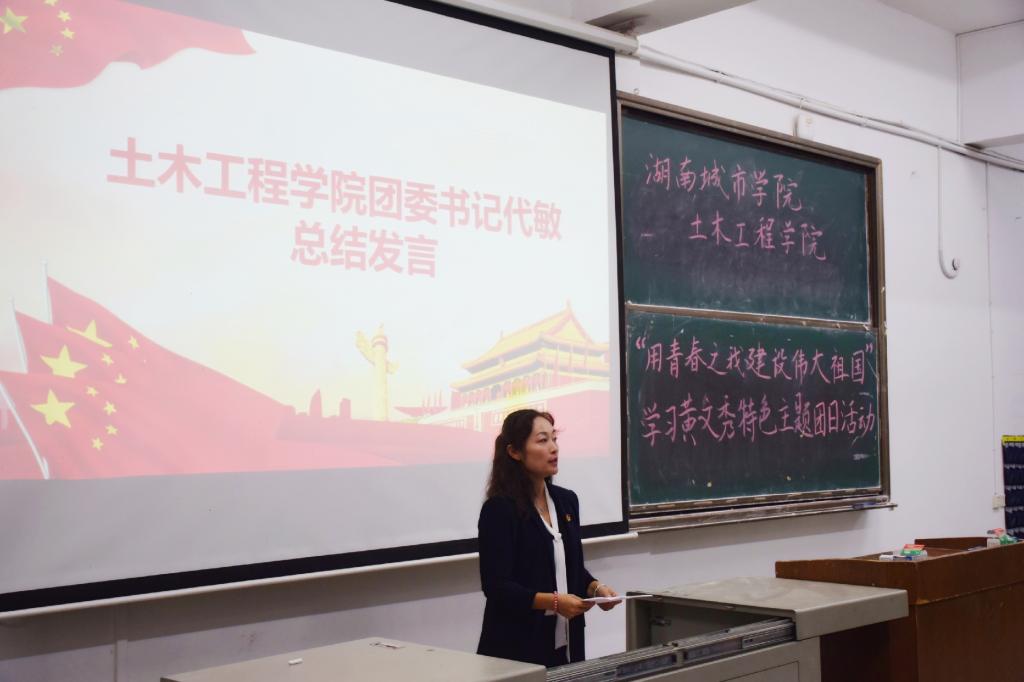 (土木院通讯员 唐渊芝) 为响应习近平总书记对黄文秀同志先进事迹的重要指示,10月8日19:30,365英国上市集团于一教学楼308教室开展“用青春之我建设伟大祖国”学习黄文秀特色主题团日活动。出席本次活动的嘉宾有马克思主义公司党总支副书记谢立新、马克思主义公司佟志阳老师、365英国上市集团团委书记代敏。到场的人员还有19届主席团、部长团成员,19级新生助班以及大一至大四各班团支书。