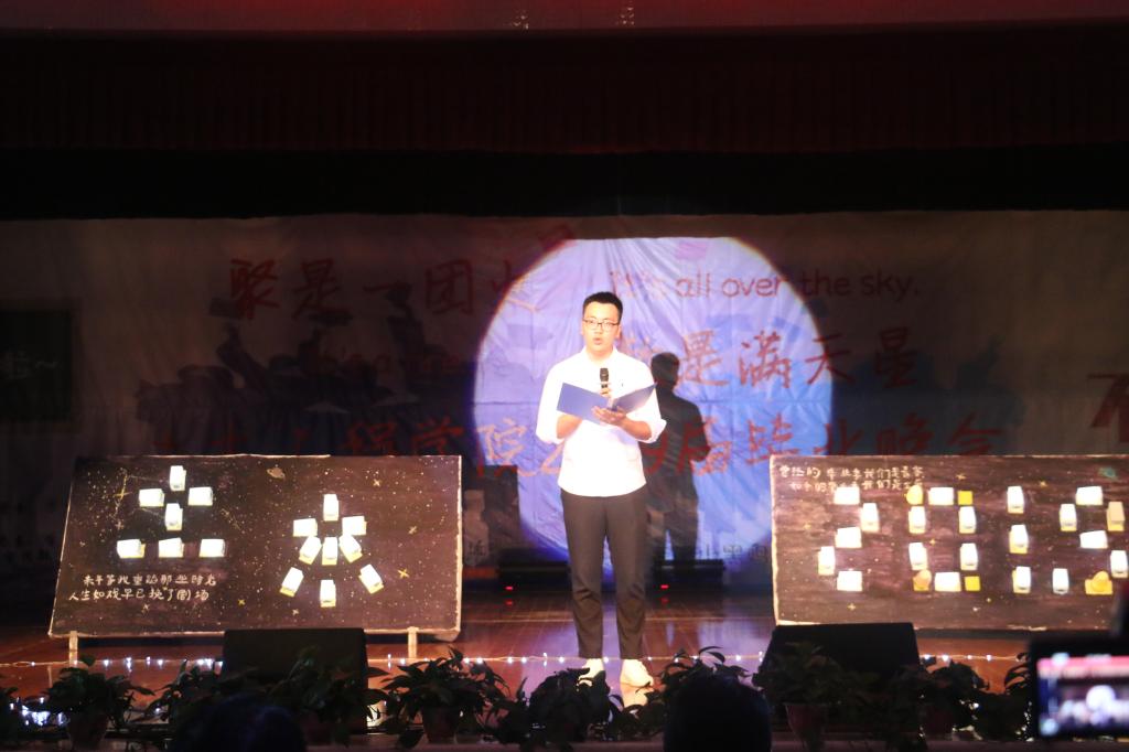 晚会伊始,一场激动人心的开场舞《喊出我的名字》带动了场面的气氛。随后,姚春梅书记上台发言。姚春梅书记指出毕业生要有自己的梦想与追求,对待工作要有担当,在社会上要勇于承担起自己的一份责任。作为土木人,要有“土承天下,木撑苍穹”的气魄,不辜负老师们的期待与厚望。随后,365英国上市集团17届员工会主席张钱鸿进行了发言。张钱鸿讲述了自己大学四年的生活经历,回顾了大学的点点滴滴,并激励同学们不忘初心,珍惜当下。发言过后,节目陆续上演。节目形式多种多样,丰富多彩,除了劲歌热舞、舞台剧、乐队表演,还有老师们倾情献唱的歌曲《永远的画面》。此次晚会为老师和毕业生们带来了一场视觉与听觉的盛宴。随着时间的流逝,晚会接近尾声。最后,所有参演人员一起合唱《毕业歌》,并与老师拍照留念。至此,本次毕业生欢送晚会圆满结束。
