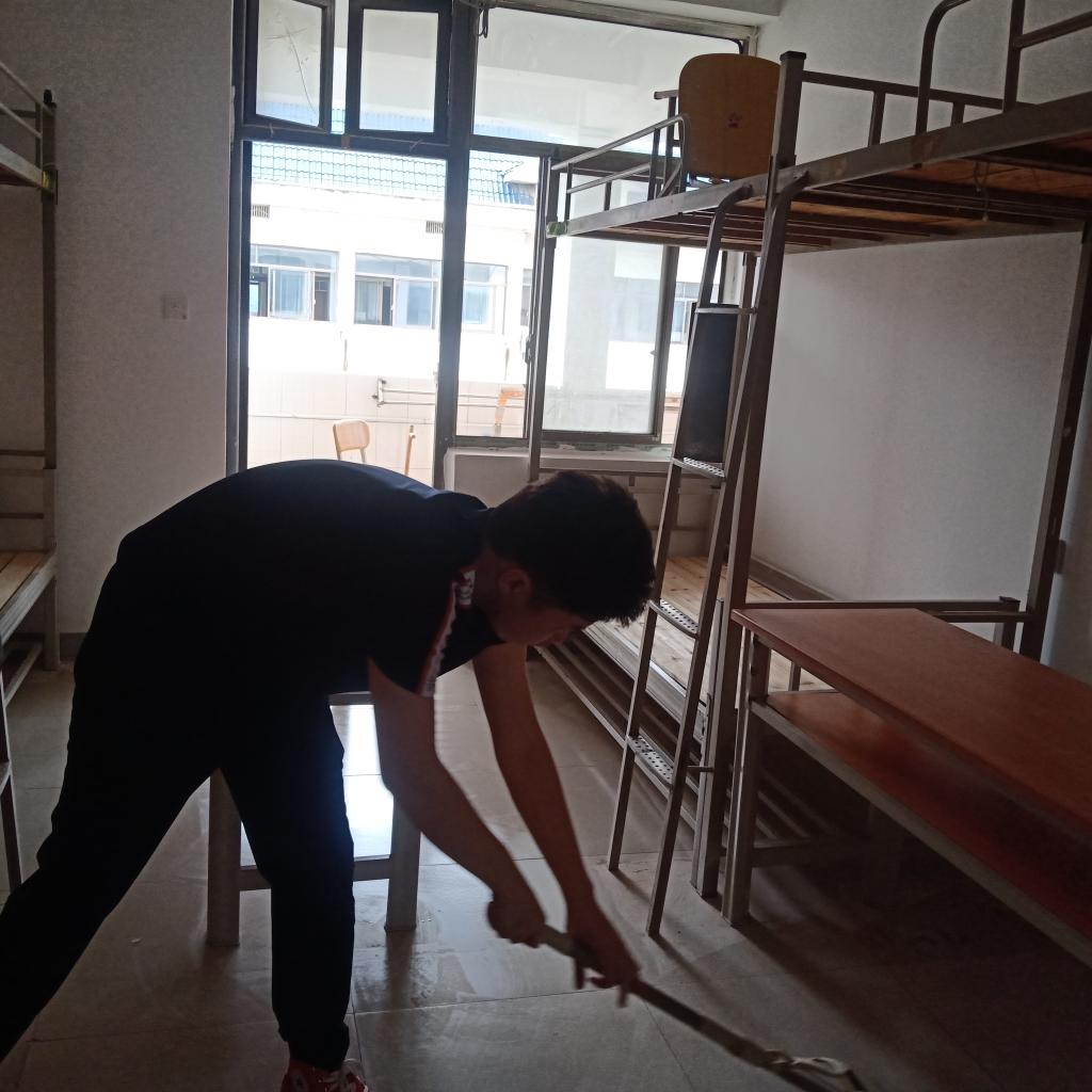 8月31日,土木院的员工干部被分配成几个小组,小组成员们拿着扫把、抹布分别前往各自负责的新生寝室进行打扫。从打扫卫生间到擦洗墙壁,同学们不放过任何死角,仔细认真地将垃圾清除干净。遇到很难清理的污垢,同学们耐心地一点一点铲除,充分发挥了不怕累、不怕脏、不怕苦的奉献精神。经过同学们的辛勤劳动,寝室的环境变得干净整洁,面貌焕然一新。同学们将寝室打扫干净后,仔细查看了寝室家具、水管及寝室通电情况,将寝室出现的问题及时上报给相关部门,并将寝室人员信息表贴在宿舍门口,从而让新生了解信息方便入住。