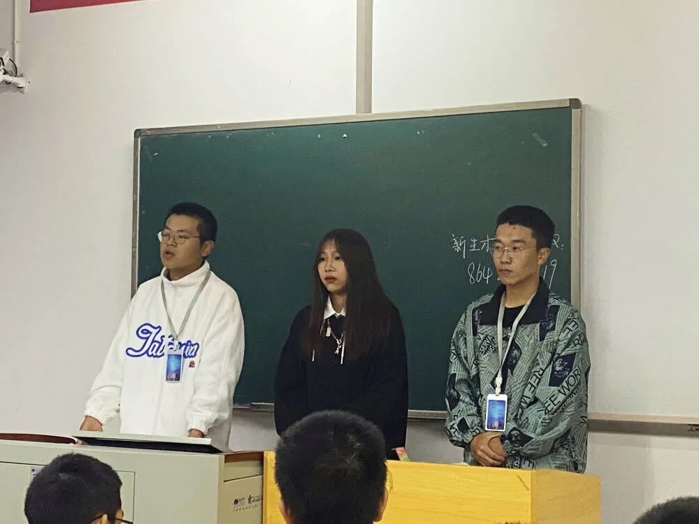 社团部实习干事对“新生才艺大赛”和“山川异域、风月同天”情景剧大赛进行介绍。其中“新生才艺大赛”内容丰富,包含声乐、器乐、舞蹈、综艺等各种类型的才艺,类型选择的多样化能使同学们更加充分地展示自己的才华。文体部实习干事对“礼仪风采大赛”和“书法书法绘画、口罩设计大赛”进行了介绍,其中重点宣传了“礼仪风采大赛”。大赛将选手分为三个风格小队,分别为:军装、旗袍、婚纱,风格的多样化更容易调动同学的积极性,同时也增添了表演的观赏性。最后干事对各大赛的参赛规则进行了详细的说明和强调。