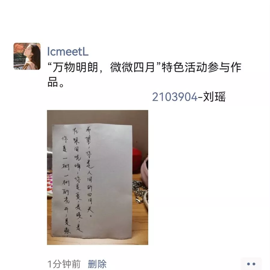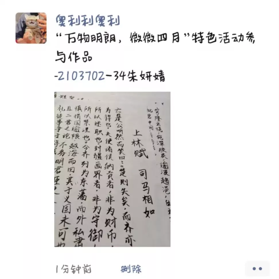 参与者将自己喜欢的句子、诗词或关于抗疫想说的话,用毛笔或硬笔(钢笔)书法的形式写到纸上并拍照上传至朋友圈或空间,随后截屏发至心理健康管理中心。由心理健康管理中心各成员评选出部分优秀作品发送至微信推文上进行小程序投票,四十八小时后统计投票结果,前十名可以获得丰厚的奖品。