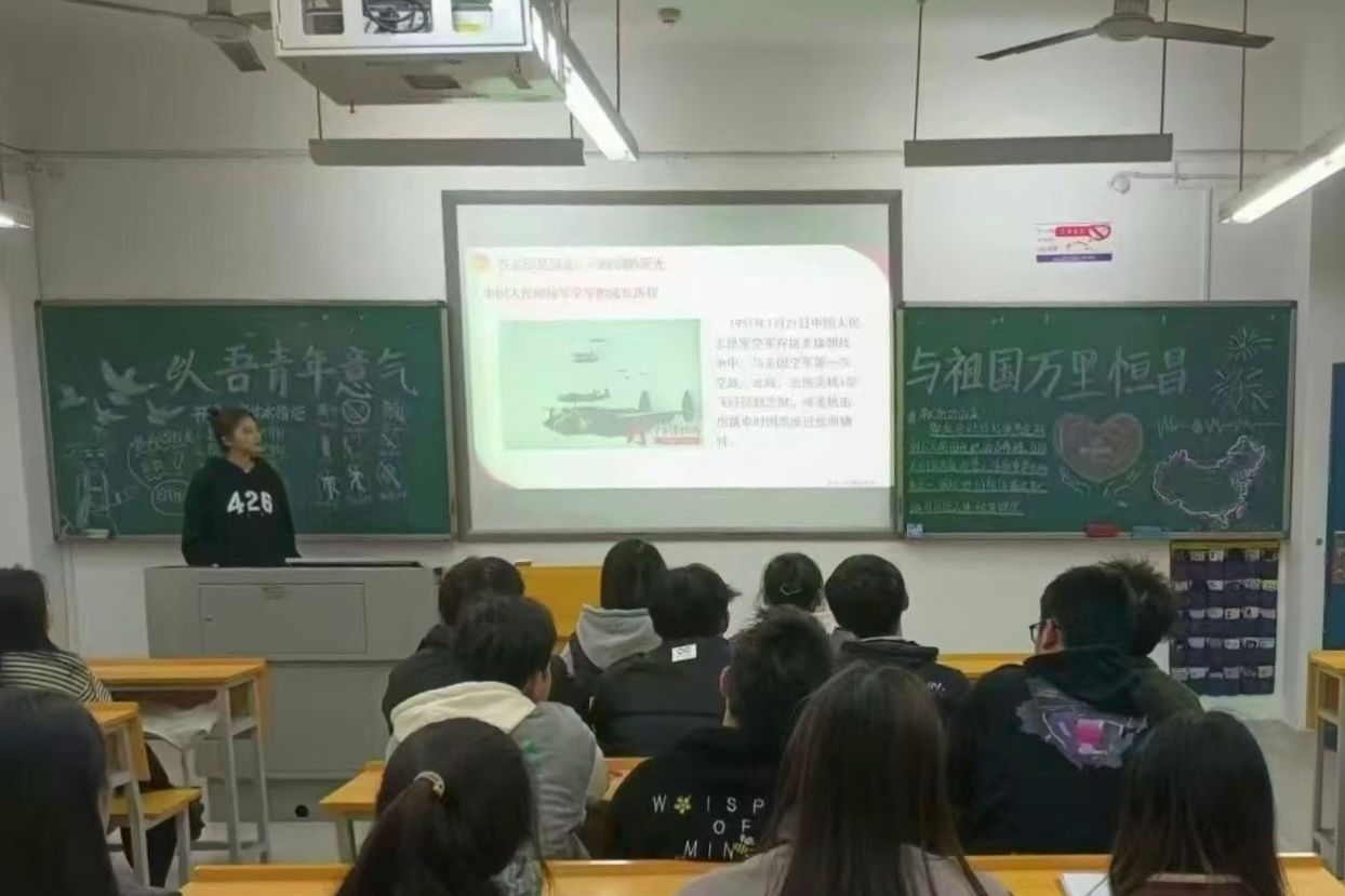 班会伊始,主持人带领本班同学紧紧围绕习近平总书记致首届“一带一路”科技交流大会贺信中的重要精神,深入学习“一带一路”建设成果,牢牢把握共建“一带一路”倡议的核心内涵,全面贯彻以和平合作、开放包容、互学互鉴、互利共赢为核心的丝路精神。衣装即是勋章,闪耀消防荣光。随后,同学们学习了消防知识。掌握了多种火灾扑救方法与逃生办法以及灭火器的使用方法,并且重温了中国人民解放军空军的成长历程。紧接着,主持人向同学们介绍了献血的起源、好处与注意事项,同时,同学们进行了急救技能的学习,开展应急救护培训,营造了“人人学急救、急救为人人”的良好氛围。最后,主持人介绍了恐怖主义的性质与行为,列举了作为公民我们对于恐怖主义正确的做法。