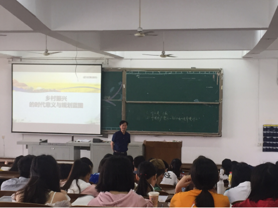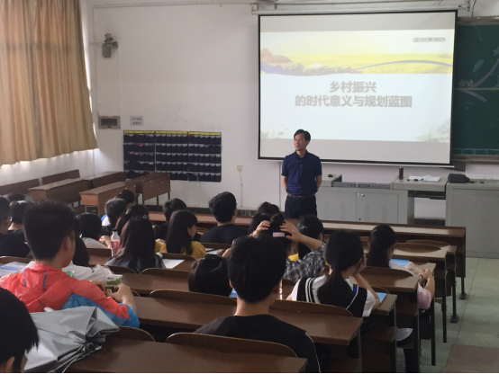 2019年5月31日,公司党委书记郭白泉在1-207为大一新生1801401、402、403、501、502班同学主讲题为《乡村振兴的时代意义与规划蓝图》的形势政策课。