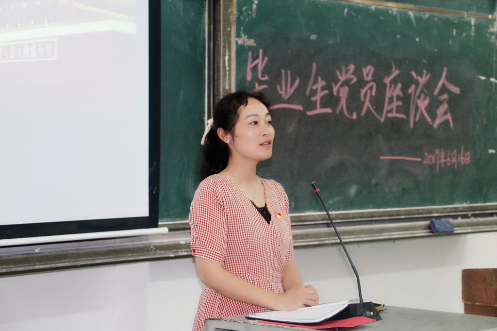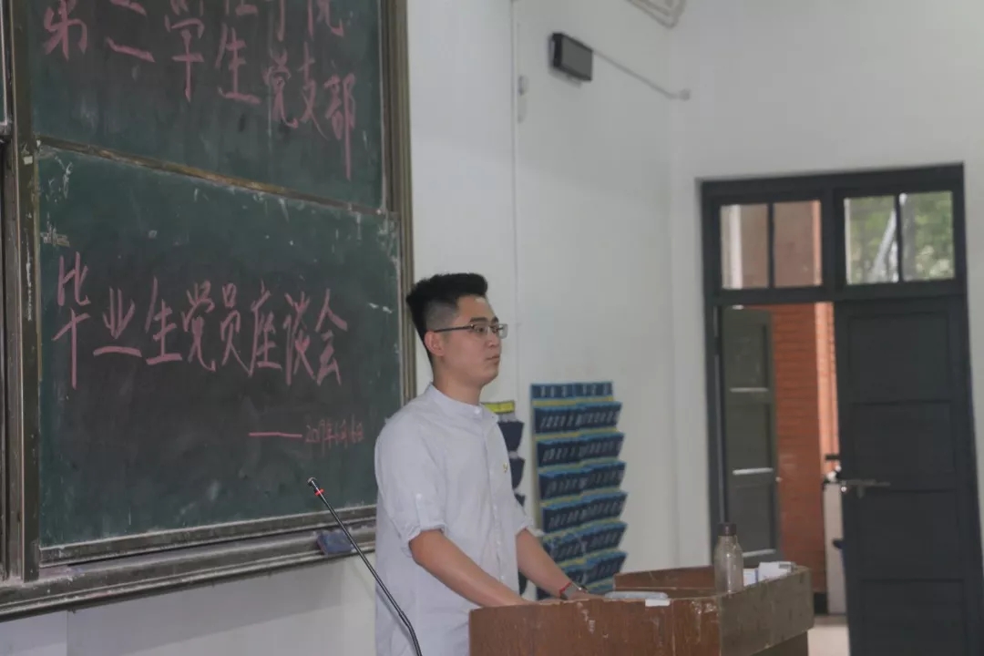 在交流环节中,毕业生党员先后上台,就工作、学习、生活等各方面的经历和经验进行了分享,对支部发展提出了宝贵的建议。多位毕业生党员提出,选择考研还是选择就业得先考虑是否适合自己,而不要一味跟风。紧接着,肄业班的党员同志上台提出了自己的想法与现阶段遇到的问题,与毕业生党员进行了热烈讨论。最后,支部书记代敏同志作总结发言。代敏同志肯定了党员同志们对支部工作的高度支持,要求党员同志们牢记初心,在今后的工作学习中继续发挥先锋模范带头作用,为党和国家的建设贡献力量,祝福毕业生党员紧跟党的步伐,成长成才。与会同志合影留念后,本次座谈会圆满结束。