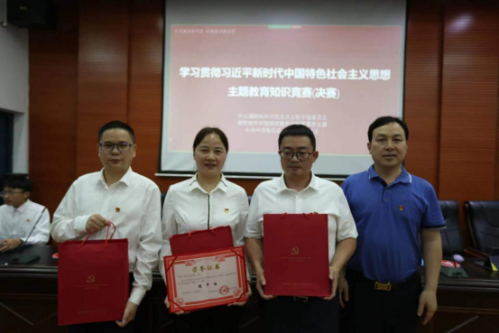 根据赛事规则,6支队伍按抽签顺序两两展开角逐,胜利者进入下一轮淘汰赛,场次转换环节,安排有现场观众抢答。比赛包括“必答题”“抢答题”“风险题”三部分,含有音频、视频等多种形式,图文并茂,形象生动。内容聚焦习近平在学习贯彻习近平新时代中国特色社会主义思想主题教育工作会议上的讲话精神、党章、党的二十大报告和党史新中国史等。赛事主题突出、形式新颖、组织严密,赛场气氛热烈。进入决胜的代表队和参赛选手临场发挥从容、沉稳、机敏、睿智,团队配合默契,师生同台竞技,以厚实的党章党史知识功底和较高的时事理论水平,充分展示了学习贯彻习近平新时代中国特色社会主义思想主题教育理论学习与实践推进的阶段性成果。进过6轮紧张激烈的争夺,公司教师党员代表队以其强劲的实力和沉稳的发挥,脱颖而出,斩获冠军,员工第、第 党支部代表队分别荣获亚军、季军,教师代表队邓超荣获“优秀个人”。