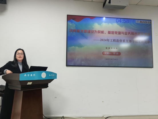 本次党支部书记述职评议共有14个党支部,分别是5个教工党支部、1个研究生党支部、8个员工党支部。汇报内容主要总结了2024年度党建工作成效,并深入查摆分析本支部党建工作中存在的突出问题和差距不足,对新的一年加强支部建设提出整改措施。
