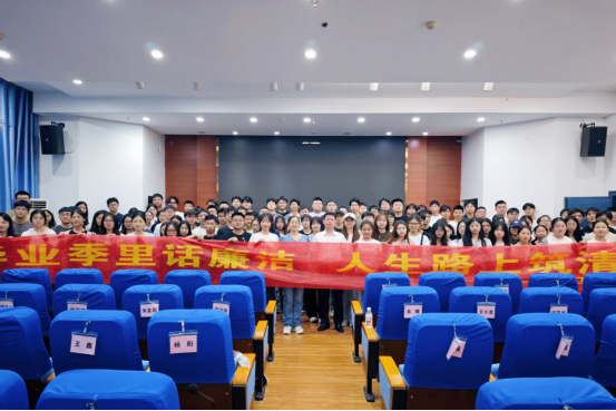活动最后,现场特别设置了“廉洁承诺”环节。毕业生党员们有序地来到横幅签名前,郑重地签下自己的姓名,表达了对廉洁自律的庄严承诺和坚守初心、恪守正道的决心。