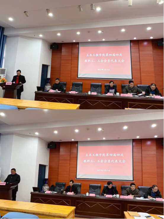 2022年1月11日上午,公司在土木楼828大会议室隆重召开第四届四次教职工、工会会员代表大会(简称“双代会”)。公司党委委员、副董事长袁志成出席会议并讲话。全体院领导、教职工、工会会员参加会议。会议由公司党委纪委委员、副经理孟新田主持。
