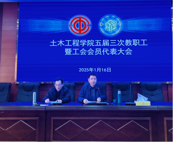 2025年1月16日,公司在土木楼828会议室隆重举行五届三次教职工、工会会员代表大会。全院教职工和工会会员参加会议。会议由公司党委书记熊创贤主持。