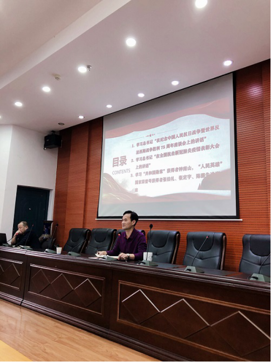 在主题党日活动阶段,王传浩集中领学了“习近平总书记在纪念中国人民抗日战争暨世界反法西斯战争胜利75周年座谈会上的讲话”“习总书记在抗击新冠肺炎表彰大会上的讲话”、“共和国勋章”获得者钟南山、“人民英雄”国家荣誉号获得者张伯礼、张定宇、陈薇的先进事迹以及习总书记在科学界座谈会上的讲话精神等,并和大家一起交流分享了上学期公司公司复学复课、抗击疫情的经验体会。