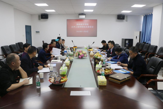 中铁广州工程局集团有限公司人力资源部部长倪勇、五矿二十三冶建设集团有限公司人力资源部总经理党委组织部部长程红军、湖南捍马集团总裁彭勇、中铁北京工程局集团第二工程有限公司人力资源部长侯珏、益阳市交通规划勘测设计院经理段献礼、中交一公局集团水利工程有限公司董事蒋仲明、益阳远大建筑工业有限责任公司总经理陶峙等校企合作单位领导、专家,围绕工程教育专业认证规范和新工科人才培养质量标准,结合企业对人才素质的新要求,与公司领导、专业负责人和师生代表展开了深度探讨、交流,对公司《2019版土木工程专业人才培养方案》有关课程建设、实践实训等重要内容重点环节提出了建设性意见建议,并对今年在本单位所在基地进行专业实习员工综合表现作了现场问卷评定。