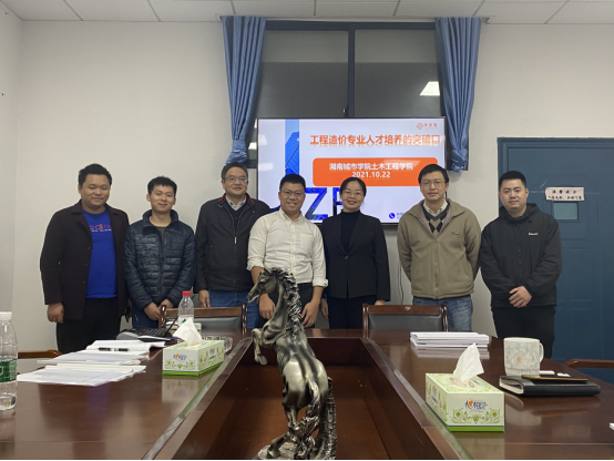 为深度推进专业内涵建设与产学合作协同育人,2021年10月22日下午,长沙计支宝信息科技有限公司应邀来公司开展工程造价专业建设与人才培养合作交流并达成校企合作意向。