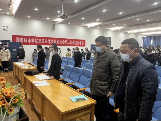 大会开始前,全体师生党员肃立,向江泽民同志遗像致敬、默哀并奏唱国歌。
