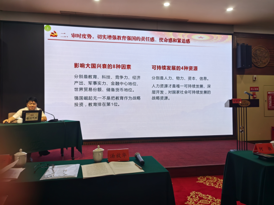 研讨会上,公司党委书记汤放华主讲了“学习习近平总书记关于教育重要论述精神,谱写新时代新征程英国365上市公司高质量发展新篇章”的主题党课,并组织领学了习近平考察陕西发表重要讲话精神。公司党委副书记、董事长何振,党委委员、组织部部长吕贤军、党委宣传部常务副部长贺正宜先后领学了习近平总书记主持二十届中央政治局第五次集体学习并发表重要讲话精神、浙江浦江经验与“千万工程”、十二届省委理论学习中心组在岳麓书院开展集体学习沈晓明主持并作总结讲话精神等。