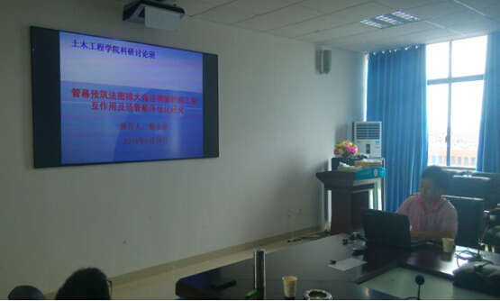 黎永索博士第一部分的内容是立论依据,首先是管幕预筑法(PPM)主要施工步骤,有管幕法、管捆法和管幕预筑法。接下来是工程概况及环境特点,黎博士用地下管线及人防分布剖面图向大家展示了站址下错综复杂的地下管线及人防通道。第二部分内容是研究方案,在研究方案中展示了这项研究的预期成果,这项研究已经在国内外知名书刊物上发表学术论文四篇,申请专利一项。讲座从一开始到结束都伴随着激烈的讨论,大家对这个研究都非常感兴趣,都纷纷提出自己的疑问,也有人给出一些建议。