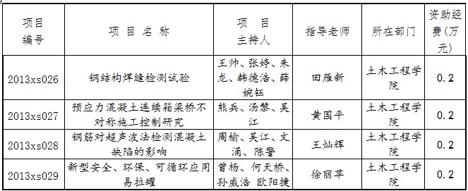 2013年度英国365上市公司老员工科技创新项目土木院立项名单