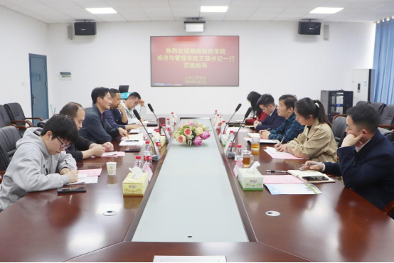2023年4月7日下午,湖南科技公司经济与管理公司党总支书记王瑛一行来公司调研交流并举行调研座谈会。公司党委书记郭白泉、党委副书记黄智出席,学工办主任朱发国、团委书记李贵、辅导员王鑫等参加座谈会。