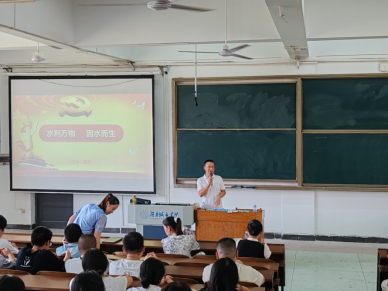 为了让同学们更深入地了解水利,爱上水利,特别邀请了一位水利行业专家,益阳市水利水电勘测设计研究院有限公司常务副总经理——庄稼,为大家分享了他的水利情怀。庄稼专家以“水利万物,因水而生”为主题,结合27年来在水利行业丰富的从业经历,通过PPT讲解和视频介绍,引经据典,给同学们讲述了水利与水利工程概况及我国水利的发展现状,让同学们对选择学习的这个专业以及可能从事的工作有了初步的了解。