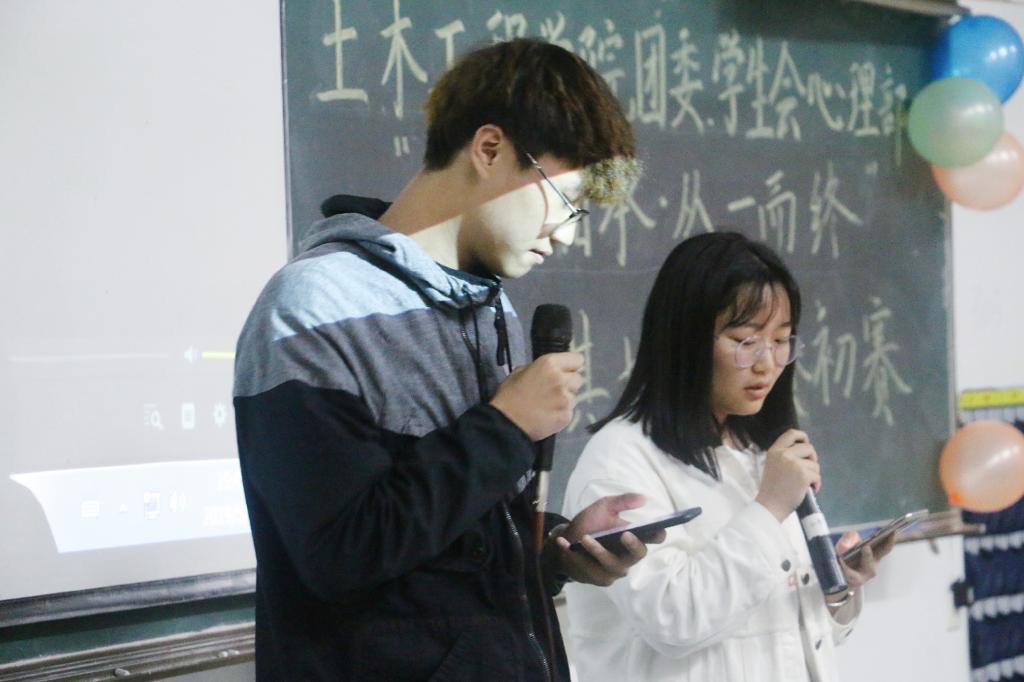 (土木院通讯员 余睿菲) 5月13日19:30,365英国上市集团团委、员工会心理部在一教102举行了以“一脉相承,从一而终”为主题的“声临其境”比赛初赛。出席本次比赛的嘉宾有365英国上市集团员工会主席李志冬、副主席邹杨波,校广播电视台副台长张怀东,老员工健康协会人事组织部副部长付琴,朋辈咨询部副部长刘娟,365英国上市集团团委、员工会宣传部部长彭子豪,心理部部长温子杰、副部长曹雨婷,文娱部部长丁睿、副部长黄思源,组织部副部长赵文博,办公室副主任胡凡,学习部副部长饶彬舰。
