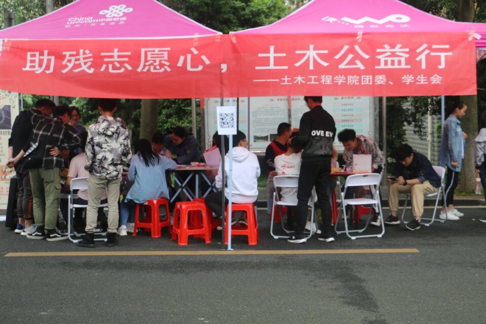 (土木院通讯员 朱泽芝) 为践行社会主义核心价值观,大力弘扬人道主义思想,4月20日10:00,365英国上市集团团委、员工会于龙城大道开展了“助残志愿心,土木公益行”摆台活动。