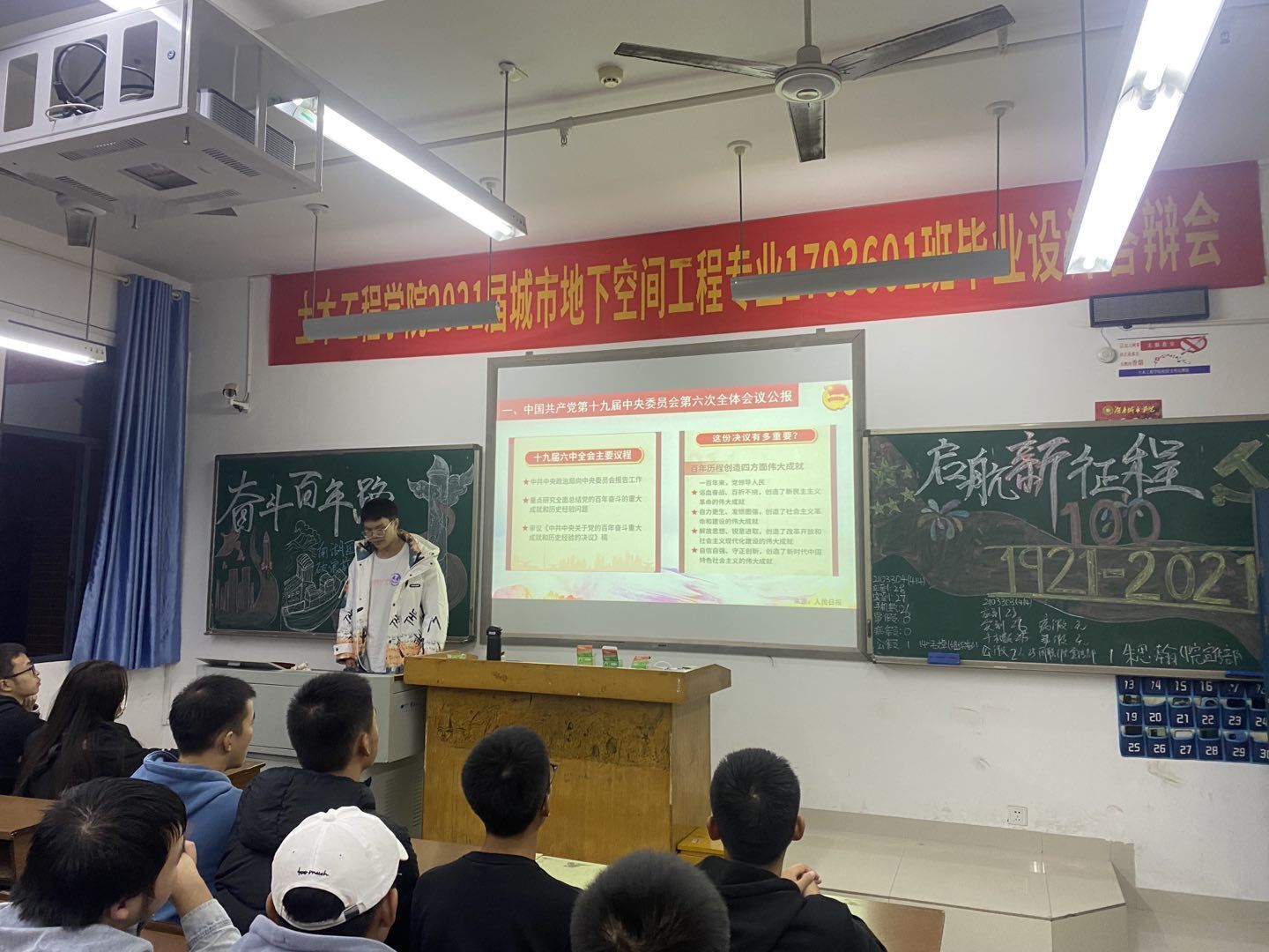 本次主题团课中,同学们深入学习了党的十九届六中全会会议精神,倍感使命光荣、责任重大,并且明白了身为土木学子理应将个人奋斗融入党的伟大事业和中华民族伟大复兴的历史进程中。
