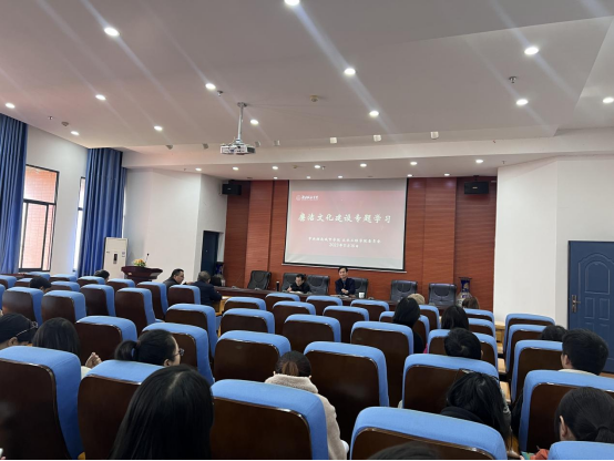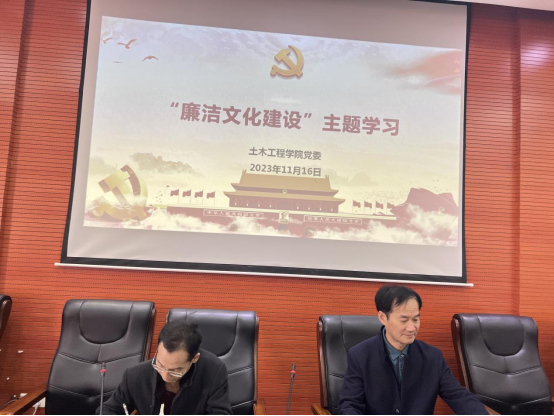 为贯彻落实党的二十大精神和习近平总书记关于加强廉洁文化建设系列论述与指示批示精神,根据中共中央办公厅《关于加强新时代廉洁文化建设的意见》、湖南省委《关于加强新时代廉洁文化建设的若干措施》和公司党委《开展廉洁教育系列活动方案》等文件规定,2023年11月16日下午2:00,公司党委在土木楼828报告厅组织开展“廉洁文化建设”专题学习,全院教职工参加学习,公司党委书记郭白泉主持学习。