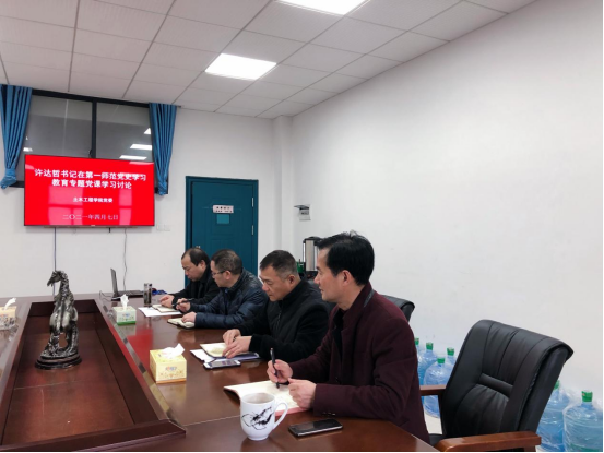 2021年4月7日上午,公司领导在土木楼722会议室集体学习讨论湖南省委书记许达哲同志在湖南第一师范开展党史学习教育时的党课精神。