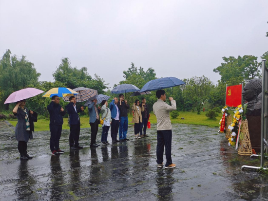 在帅孟奇老人铜像前,郭白泉等一行举起右手、面向党旗,重温了入党誓词,通过红色基地现场参观研修活动,进一步锤炼党性修养,增强宗旨意识与身份意识,增强党史学习教育的针对性、实效性。